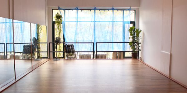 Sol en bambou surélevé de 18 x 20 pieds avec un son de qualité - Système de son - Rangements - Climatisation -Chaises - Hauts plafonds - Belle luminosité - Bâtiment adjacent aux cafés, restaurants et magasins - Situé à 3 minutes à pied du métro Place-des-Arts et un demi-pâté de maisons du "Quartier des Festivals"